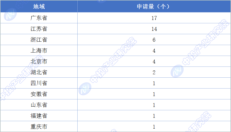 圖表:截至2024年光電共封裝專利申請在中國各省市申請量