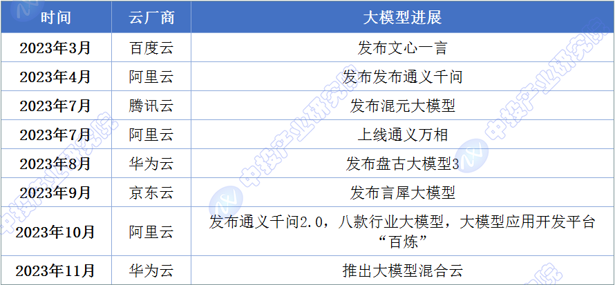 圖表:2023年國(guó)內(nèi)云廠商的大模型進(jìn)展